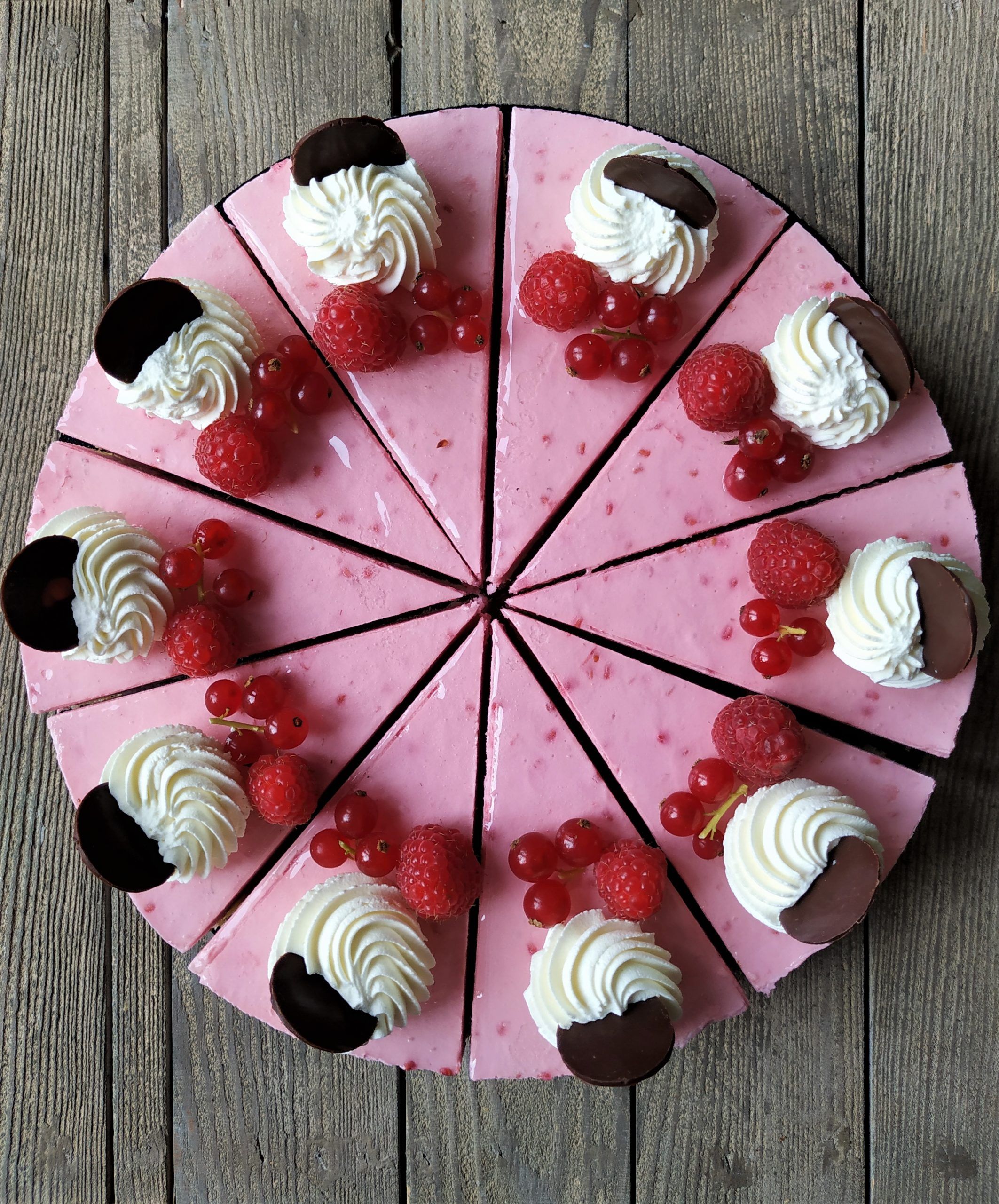 Süsse, fruchtige Himbeerquarkcrème mit hellem Biskuit.