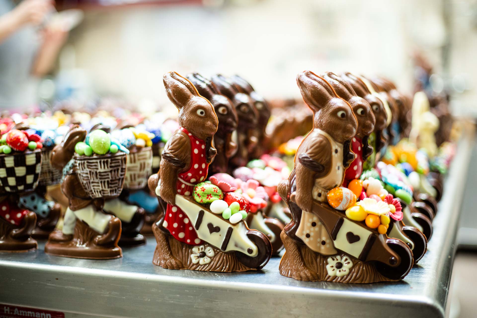 Aber nicht nur der klassische Osterhase aus Schokolade wartet auf Sie, sondern auch feine Pralines Eier, Süssigkeiten fürs Nästli, Truffes Eier und Osterdeko für Ihre Wohnung.