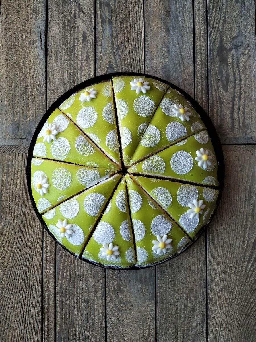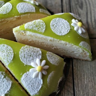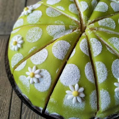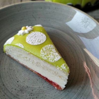 Feine Crème mit hellem Biskuit und dem klassischen grünen Marzipan-Überzug. Nicht nur ein echter Hingucker, auch ein passendes Dessert für Ihren Anlass.