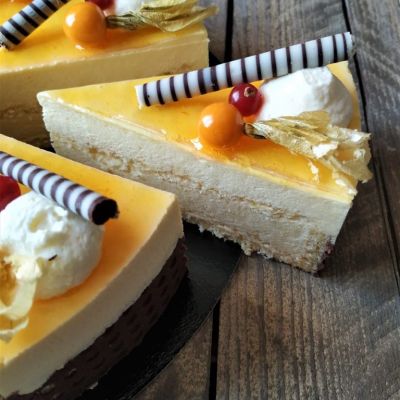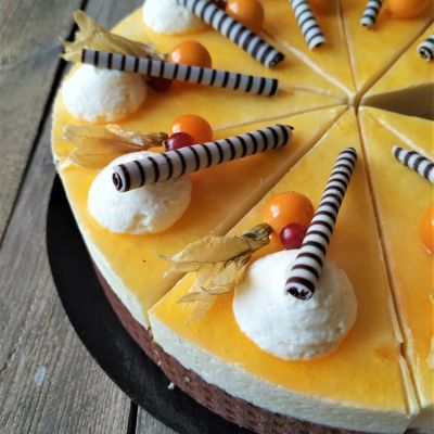 Die Passionsfrucht macht diese Torte nicht nur exotisch, sondern gibt dem süssen Biskuit auch eine herrliche Frische. Wir lieben, neben dem feinen Geschmack auch ihre orange Farbe. Hingucker auf jedem Dessertbuffet!