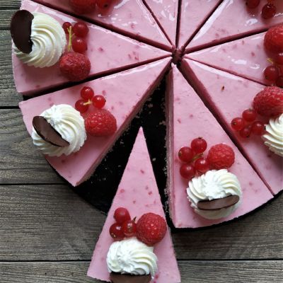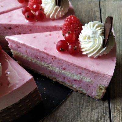 Süsse, fruchtige Himbeerquarkcrème mit hellem Biskuit.